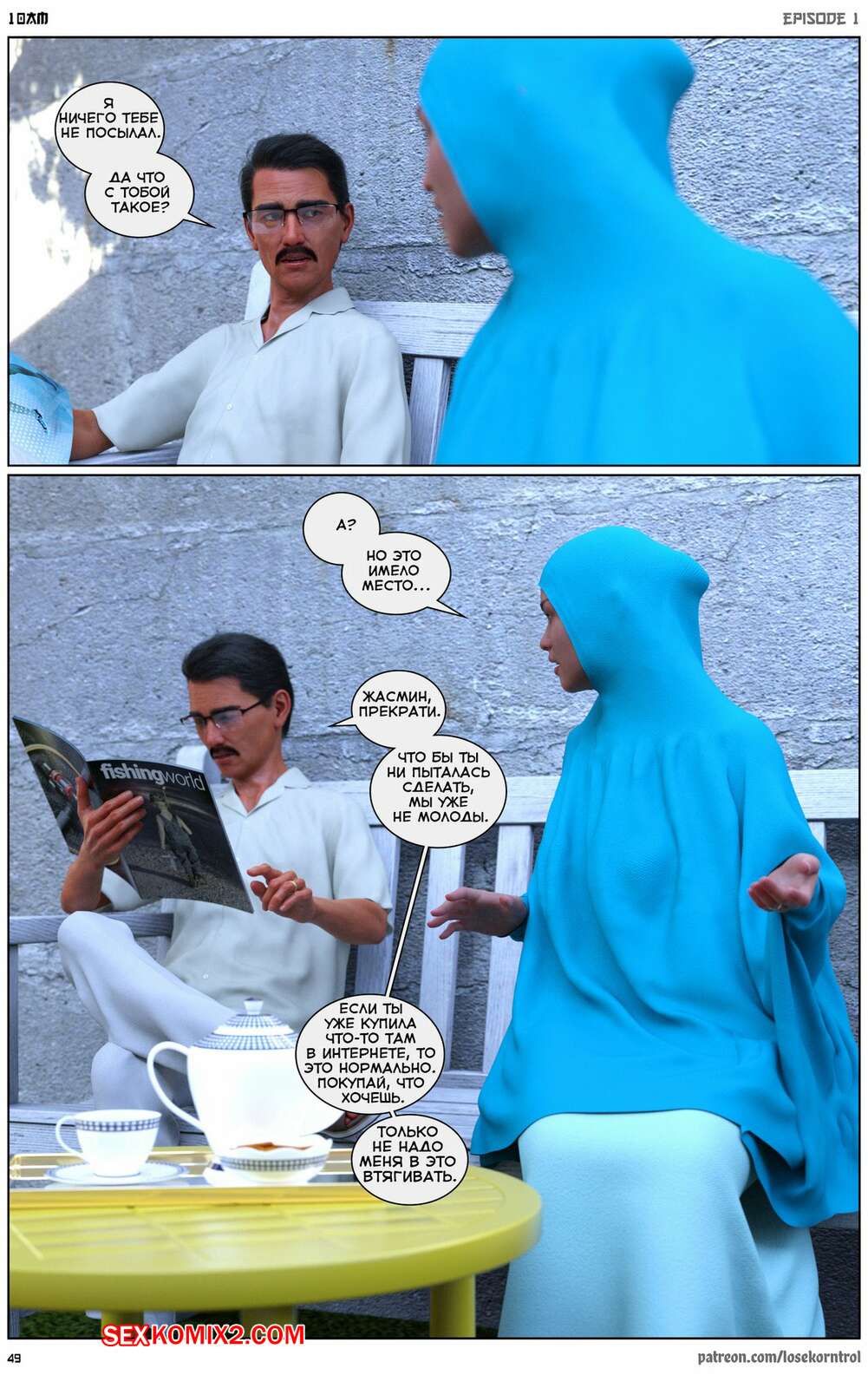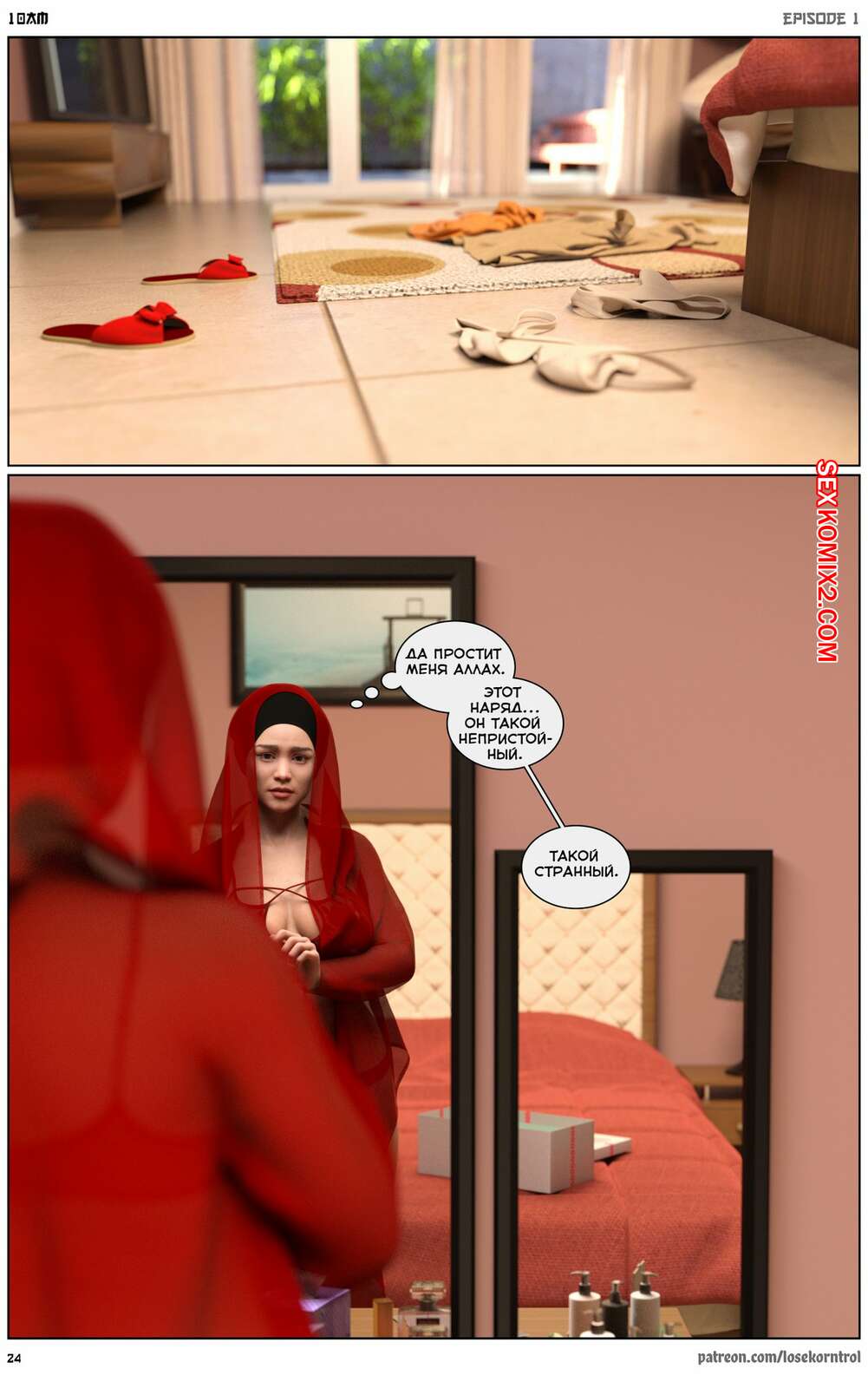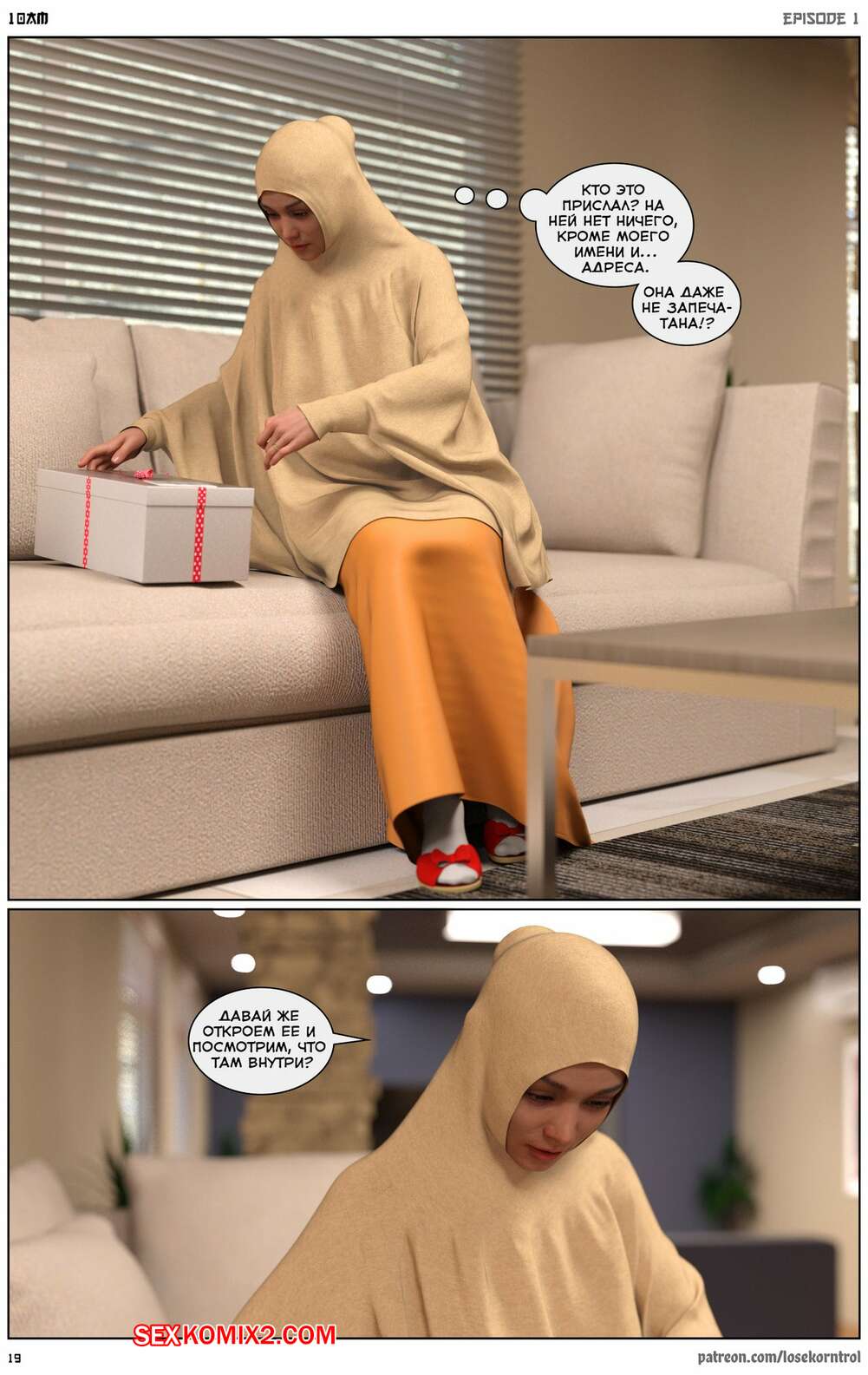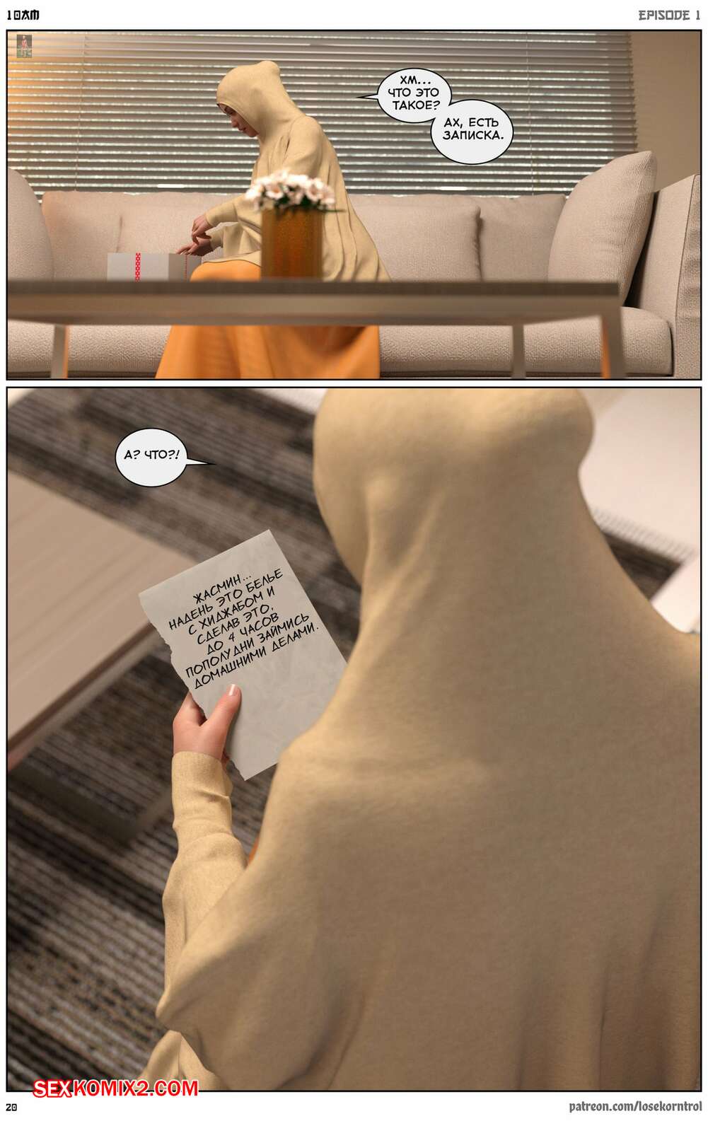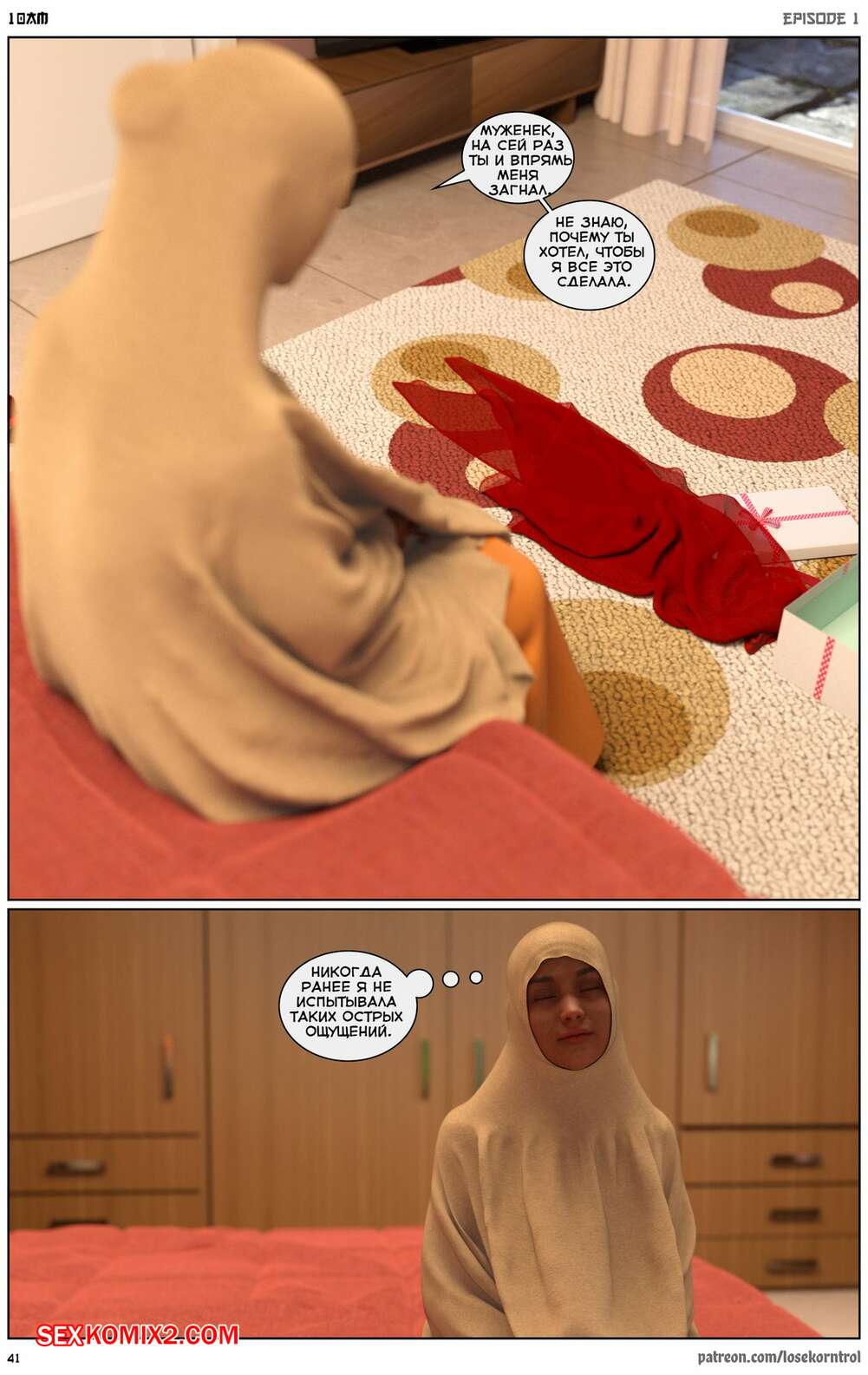 Порно комикс 10 утра. 10 am. LoseKorntrol Горячая сисястая милфа брюнетка постоянно возбуждена и пытается потрахаться со своим мужем, но он не обращает на нее внимания. Девушка сшила тебе сексуальный наряд и решила немного развлечься.