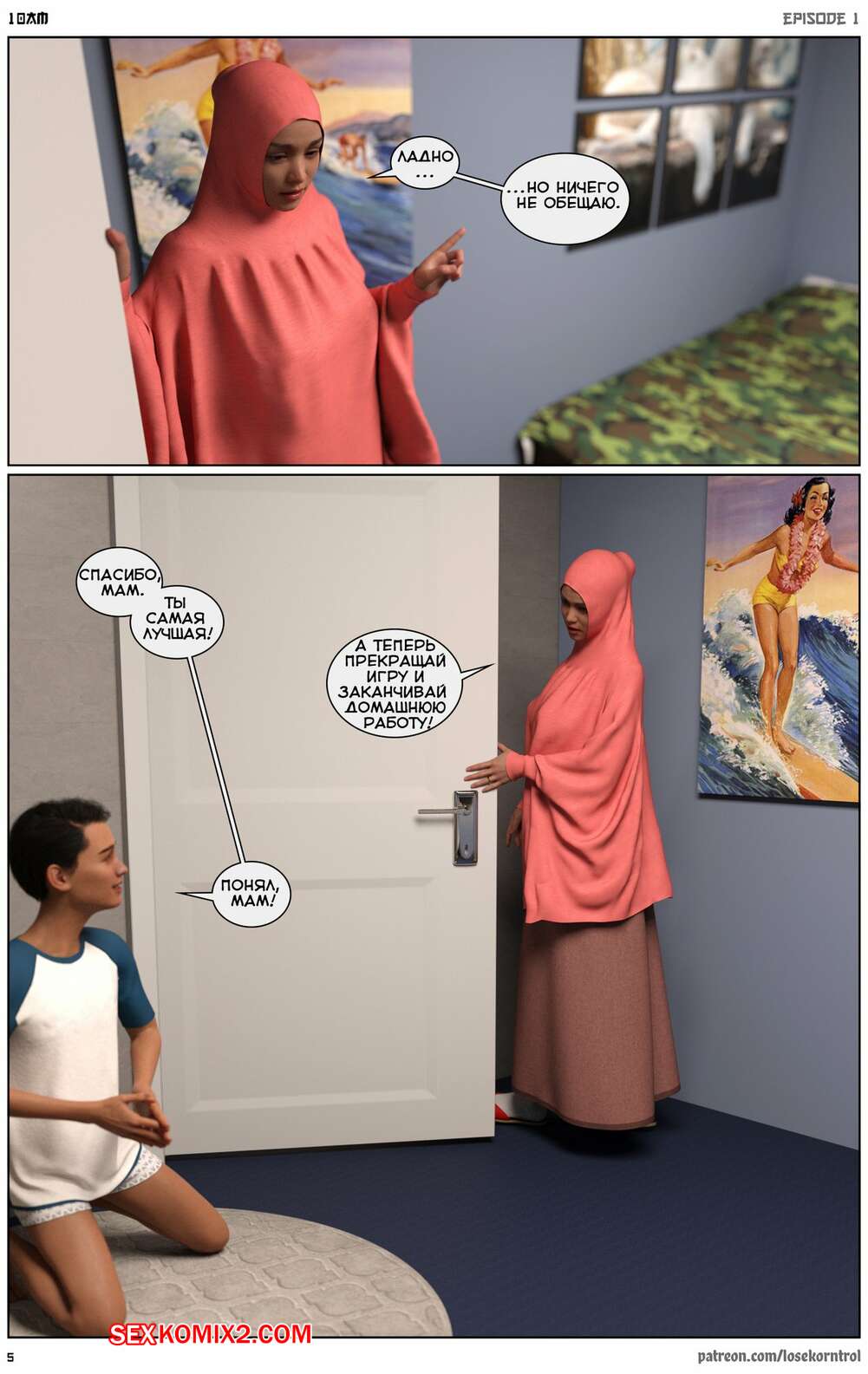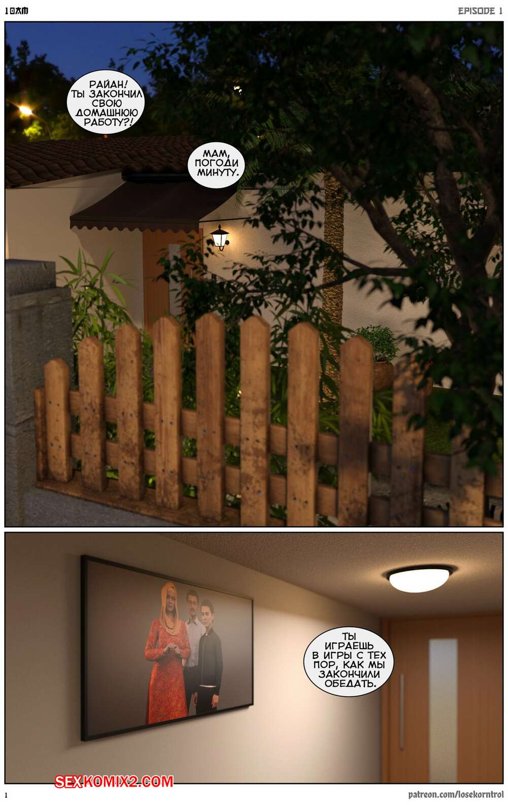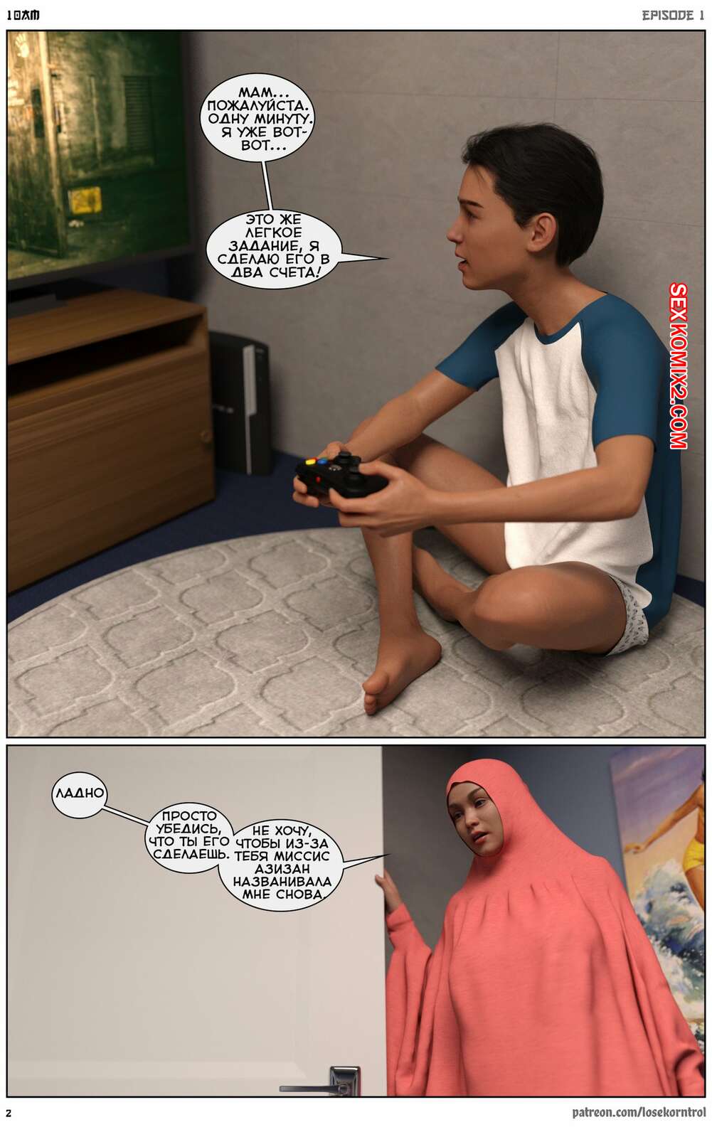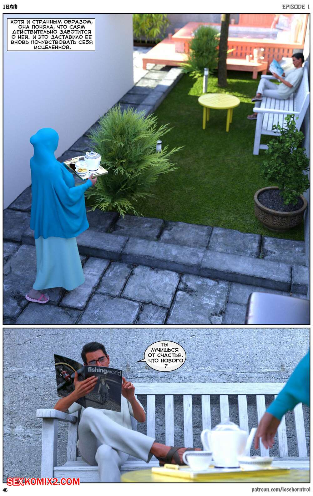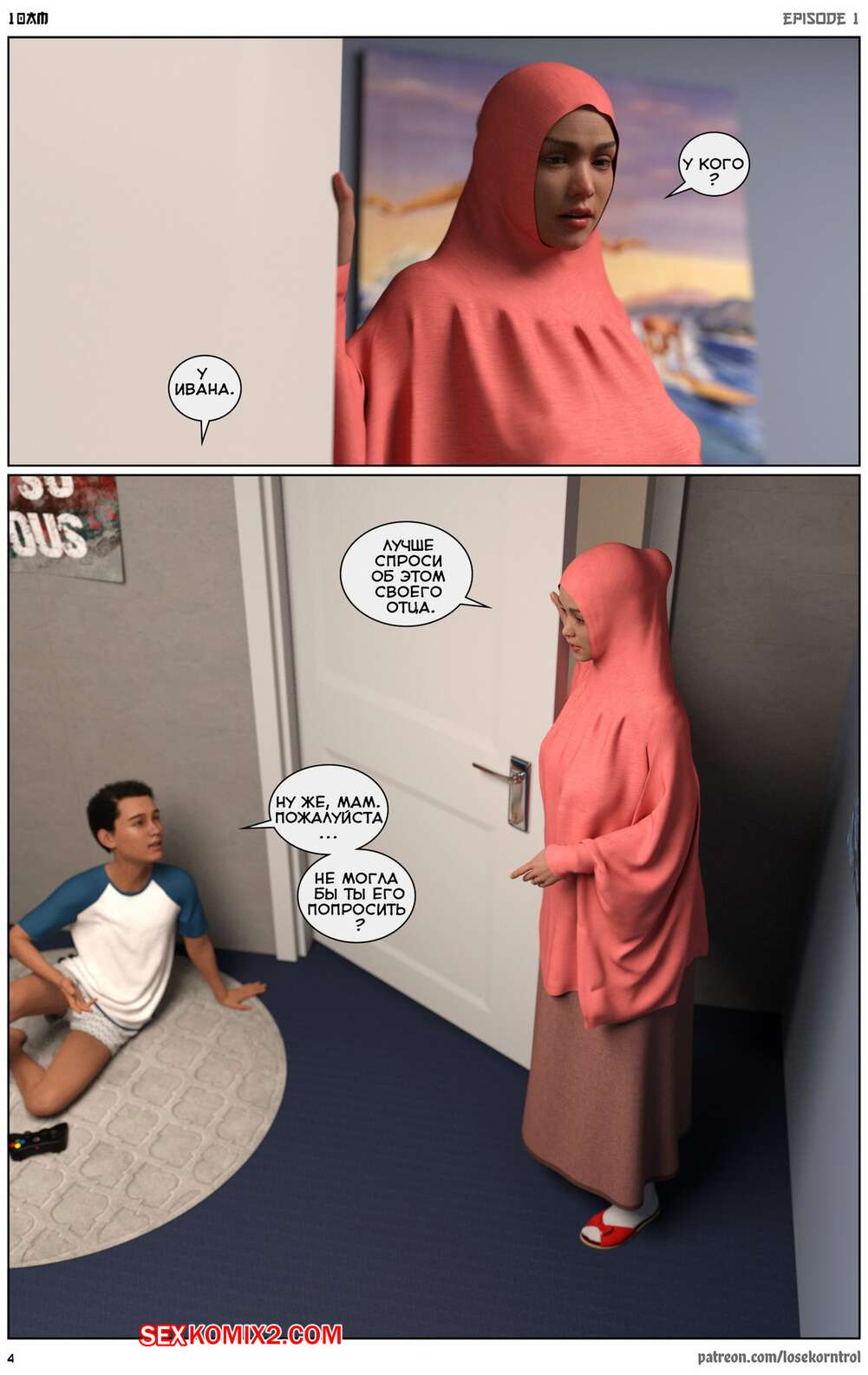 Порно комикс 10 утра. 10 am. LoseKorntrol Горячая сисястая милфа брюнетка постоянно возбуждена и пытается потрахаться со своим мужем, но он не обращает на нее внимания. Девушка сшила тебе сексуальный наряд и решила немного развлечься.