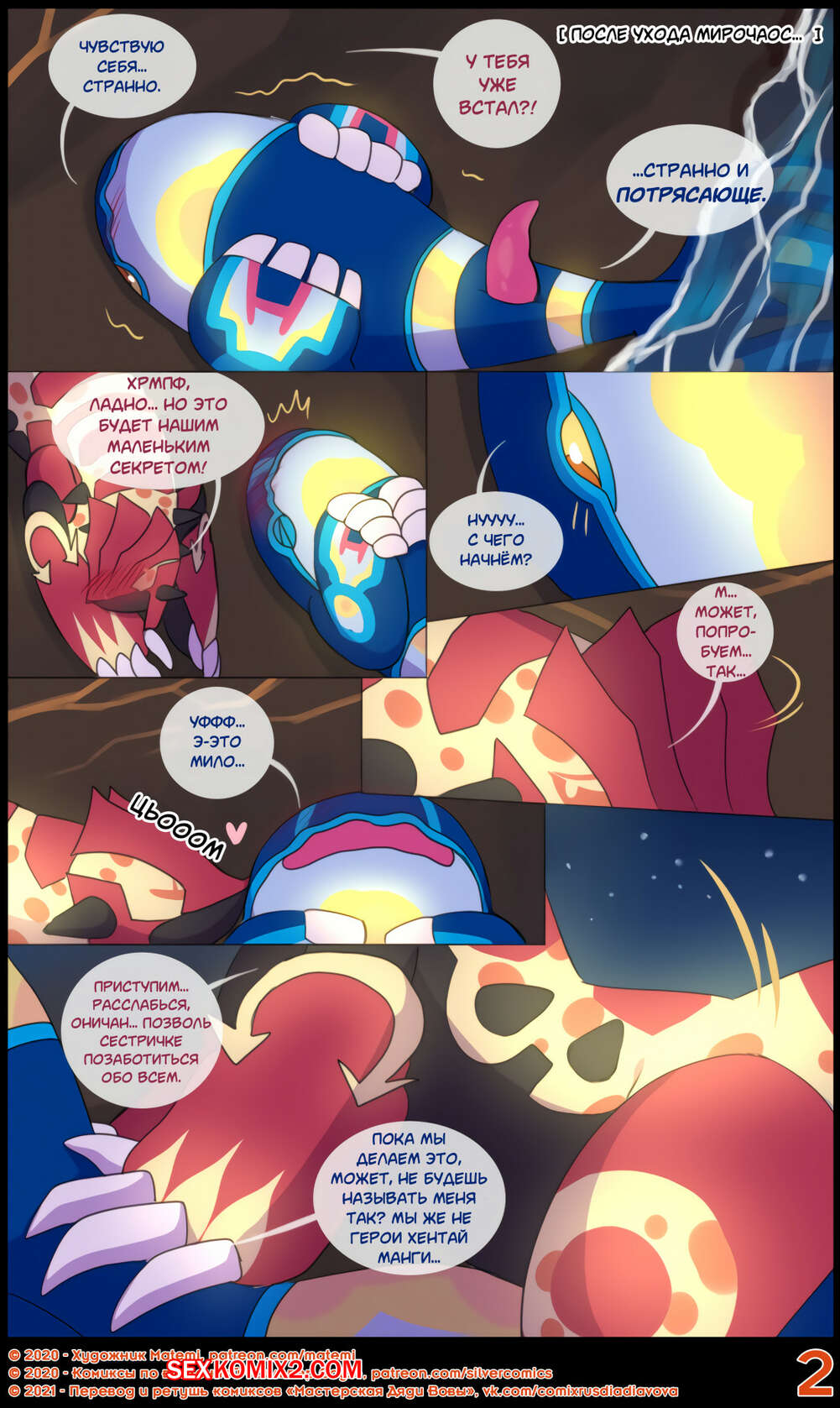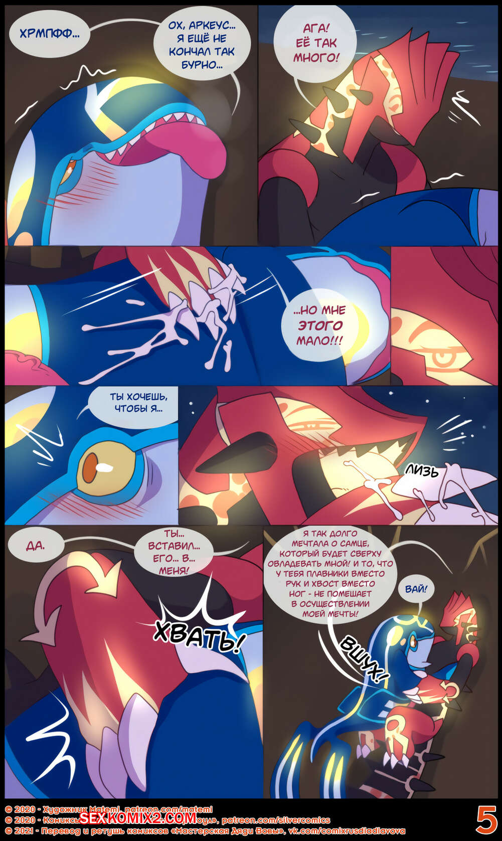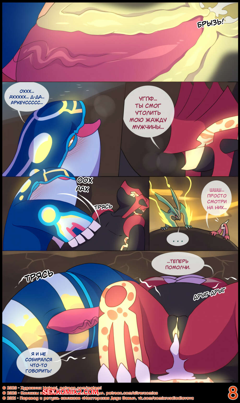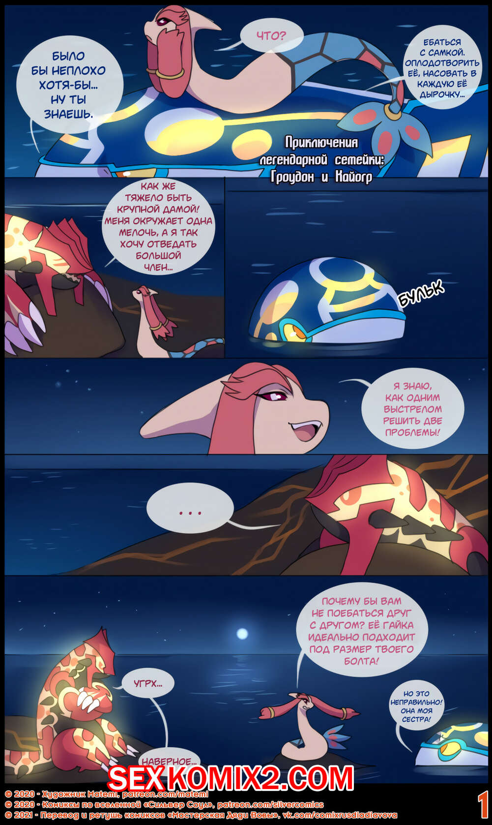 Порно комикс Сильвер. Покемоны. ПЛС. Гроудон и Кайогр Горячая сисястая красотка покемон невероятно возбудилась и решила повеселиться со своим дружком. Она разделась и стала сосать его большой хуй, после чего дала ему себя хорошенько выебать.