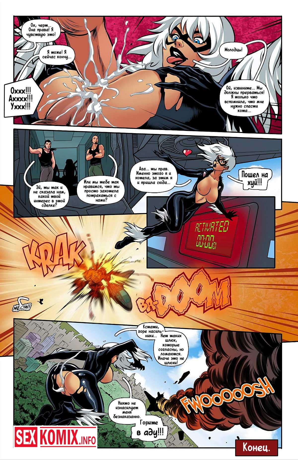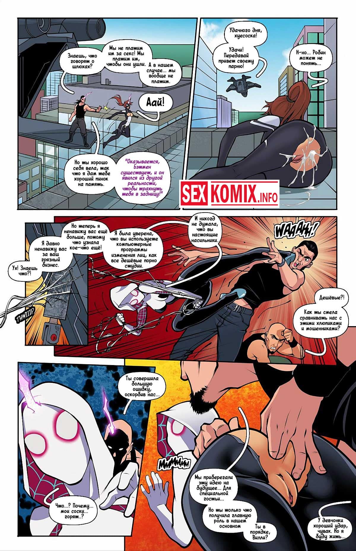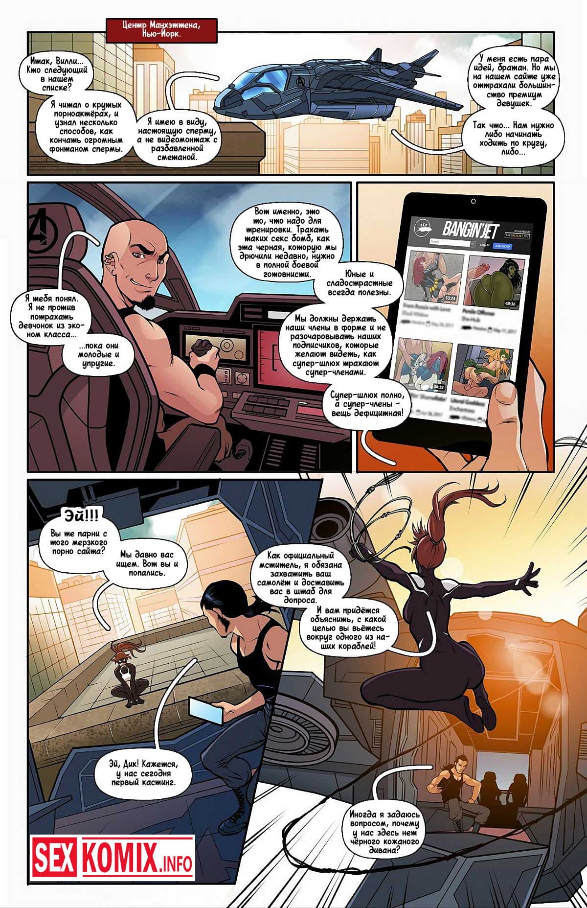 Порно комикс Трах Джет. Девушка паук напала на след преступников, которые угнали джет мстителей и попыталась их схватить. Но когда попала на корабль почувствовала сильное возбуждение, это был гипноз супер-злодеев. Они захватили её разум и теперь красотка под их управление. Воспользовавшись этим преступники трахнули девушку в супергеройском костюме и оставили её на крыше небоскреба.