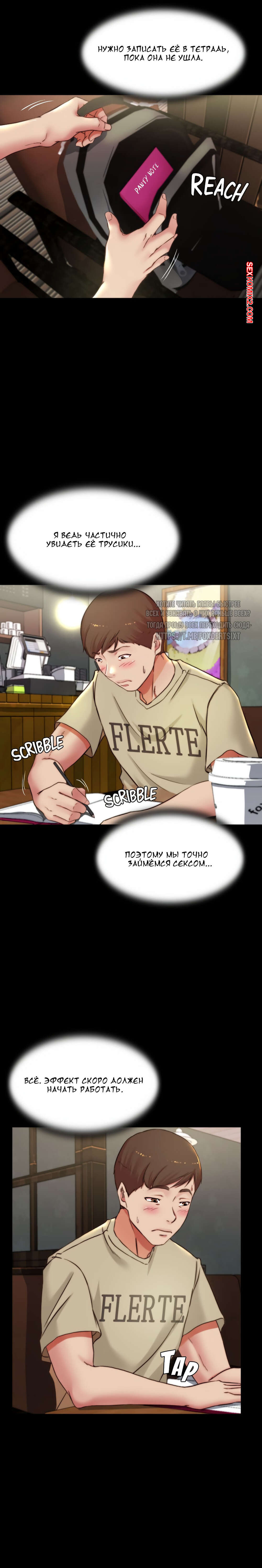 Порно комикс Тетрадь по трусикам. Части 72 и 73. Panty Note Парень продолжает пользоваться своей тетрадью по трусикам. Он увидел трусики горячей красоткой брюнеткой и решил во что бы то ни стало хорошенько ее трахнуть своим большим членом.