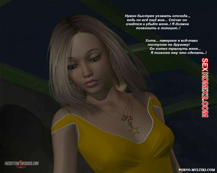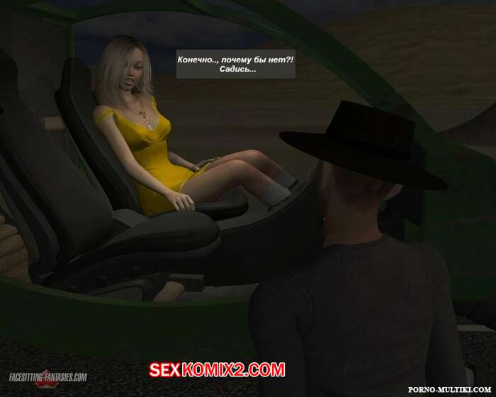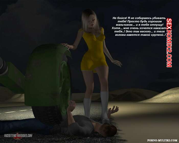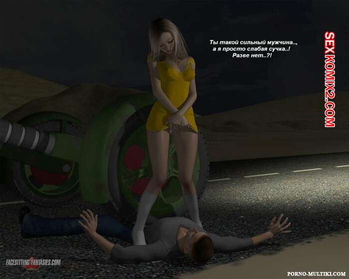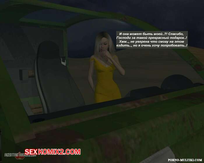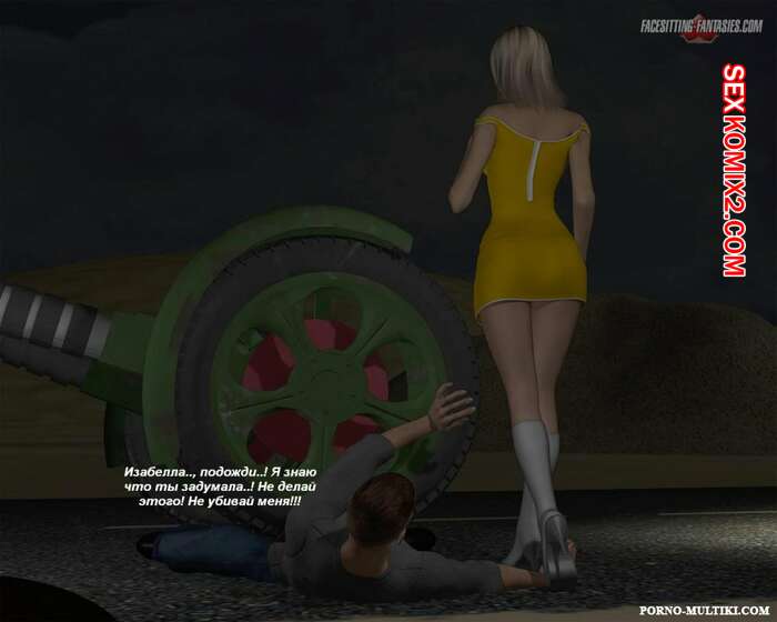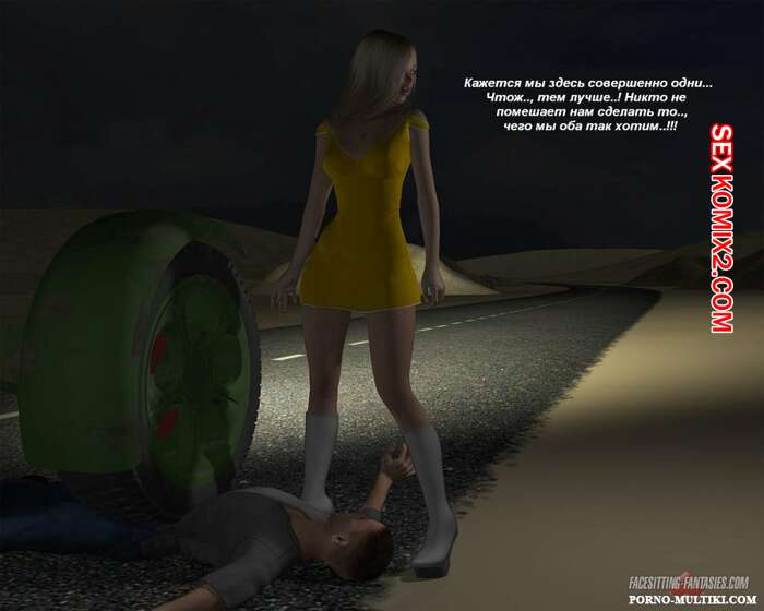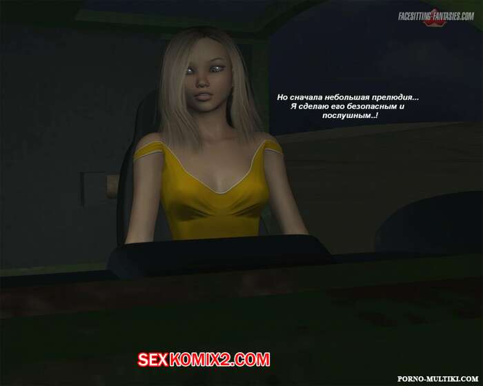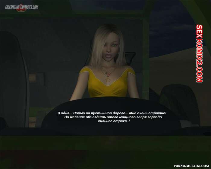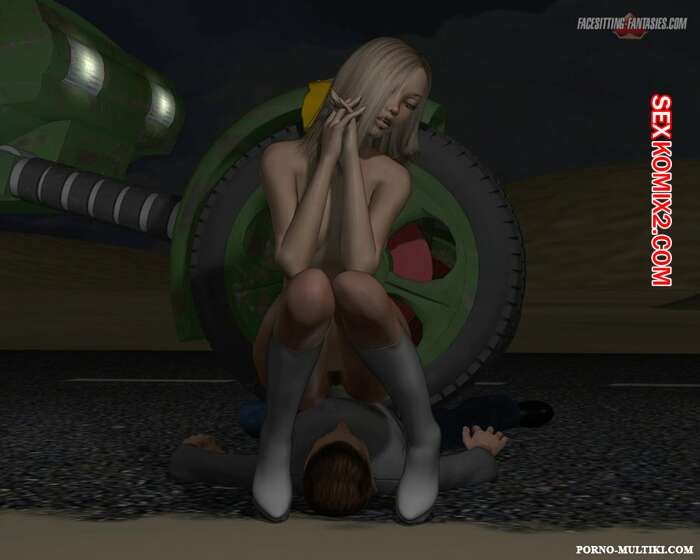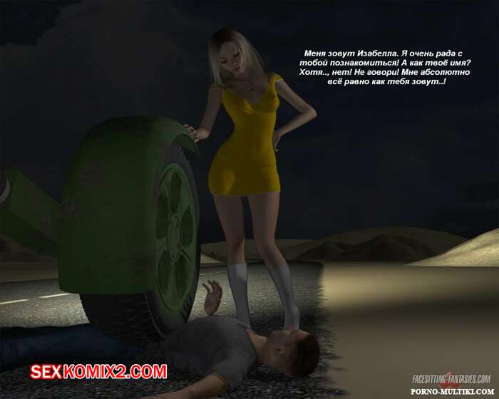 Порно комикс Ночные приключения Изабеллы Горячая сисястая красотка блондинка решила повеселиться. Ночью она отправилась на встречу с парнем и наехала на него машиной, после чего разделась и оседлала его лицо, чтобы он отлизал ее пизденку.